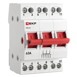کلیدهای سه حالته TPS-63 سری PROxima دستگاههای مکانیکی قطع و وصل هستند که برای سوئیچ دستی بارهای ترکیبی (فعال و القایی) در مدارهای جریان متناوب با ولتاژ تا ۴۰۰ ولت، جریان نامی تا ۶۳ آمپر و فرکانس ۵۰ هرتز طراحی شدهاند. این کلید دارای سه وضعیت کاری است: وضعیت I: ورودی ۱ روشن است وضعیت II: ورودی ۲ روشن است وضعیت ۰: هر دو ورودی خاموش هستند.